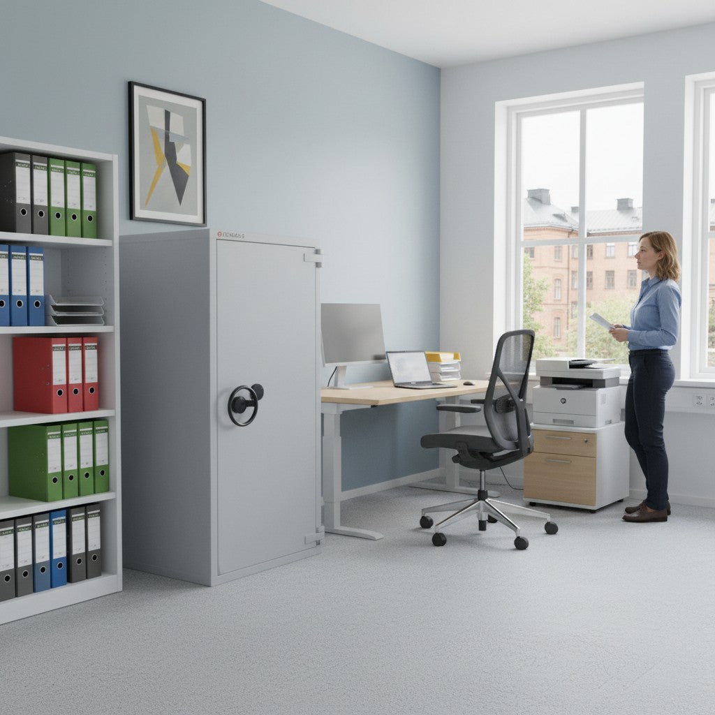 Skåpet erbjuder ett klassificerat brandskydd för dokument och värdesaker. Brandskyddet är hela 120 minuter för papper med brandklassning NT Fire 017 P120 min. Statistik visar att mer än 80% av alla företag som har utsatts för brand har försatts i konkurs inom tre år. Skåpet erbjuder ett mycket högt brandskydd för handlingar och garanterar företagets affärer.