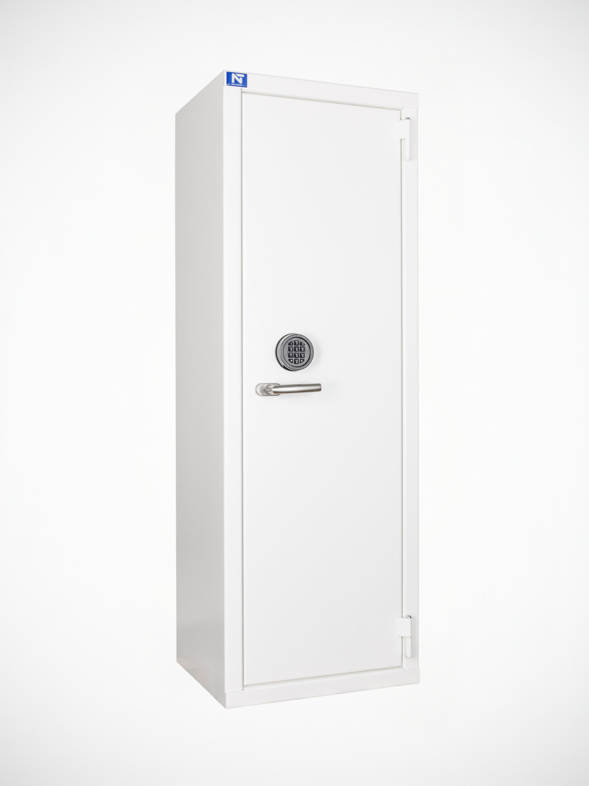 Skåpet är byggd i 4 mm helsvetsad stålkonstruktion och har ett väl säkrat låssystem, skyddat mot såväl borrning som manipulation, slag och brytning.