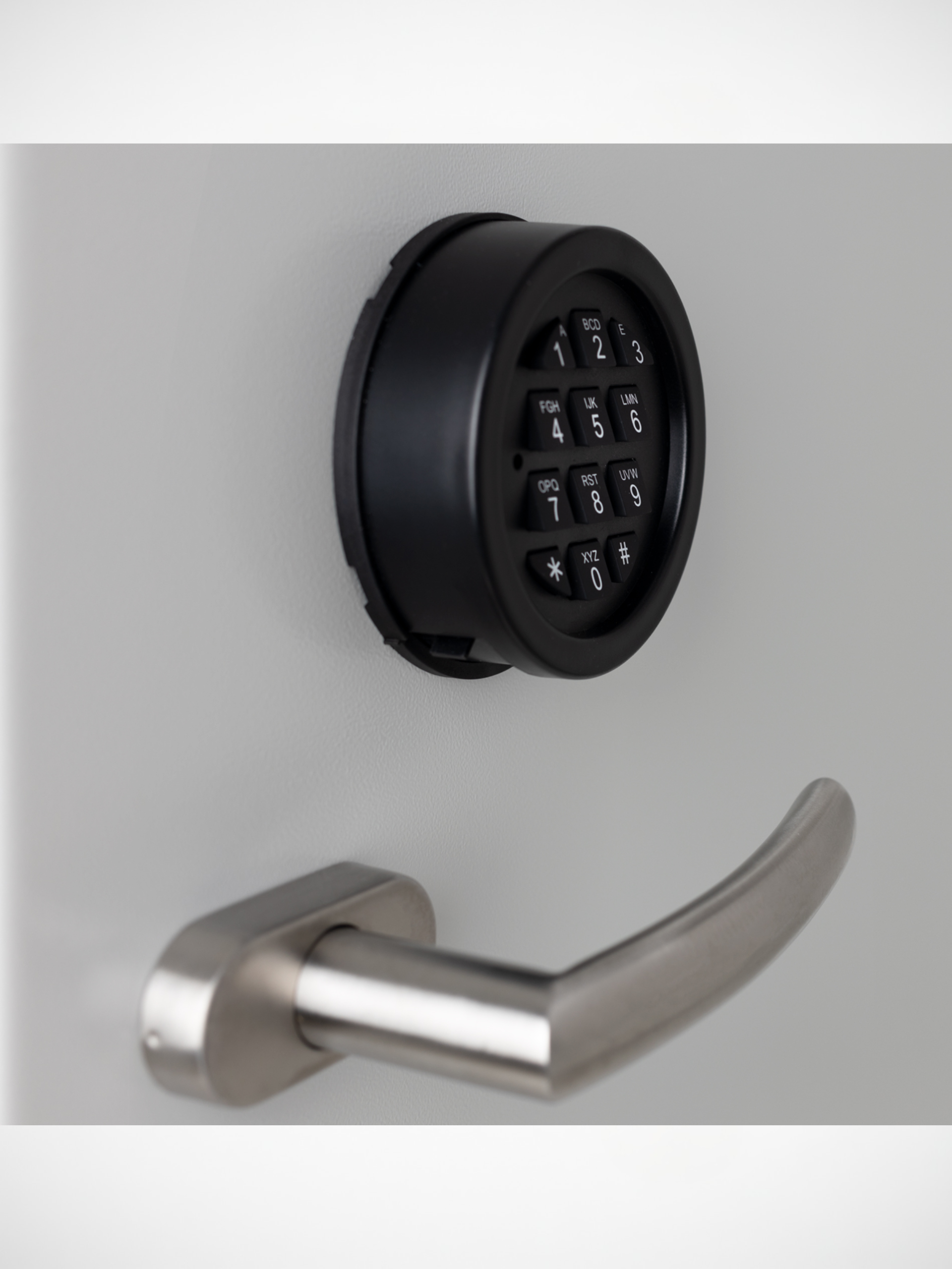 Levereras med elektroniskt kodlås med möjlighet till 2 olika koder. Kodlås med upp till 10 koder finns som tillbehör.