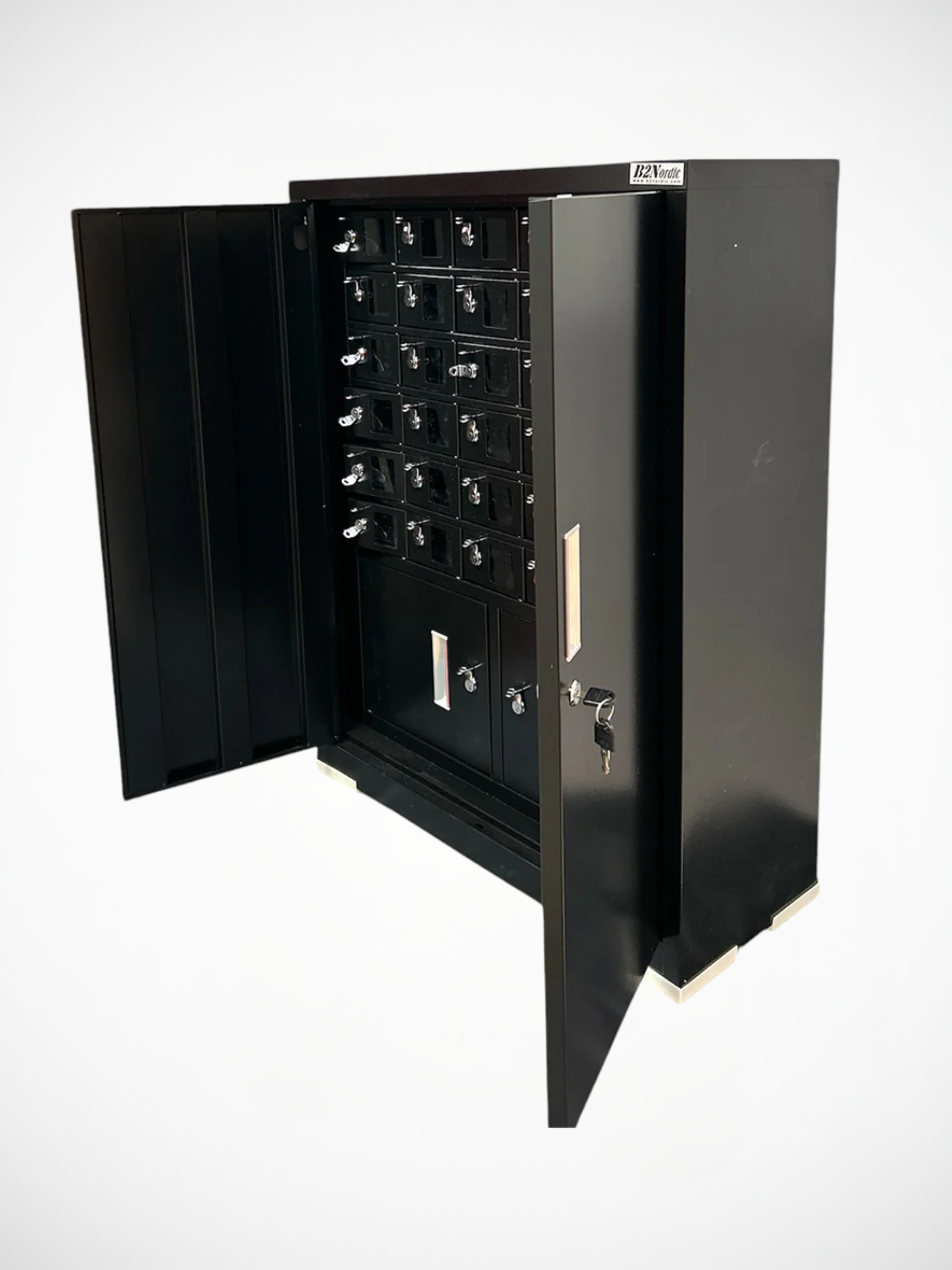 Mobiltelefonskab, 20 mobiltelefoner, nøglelås, sort