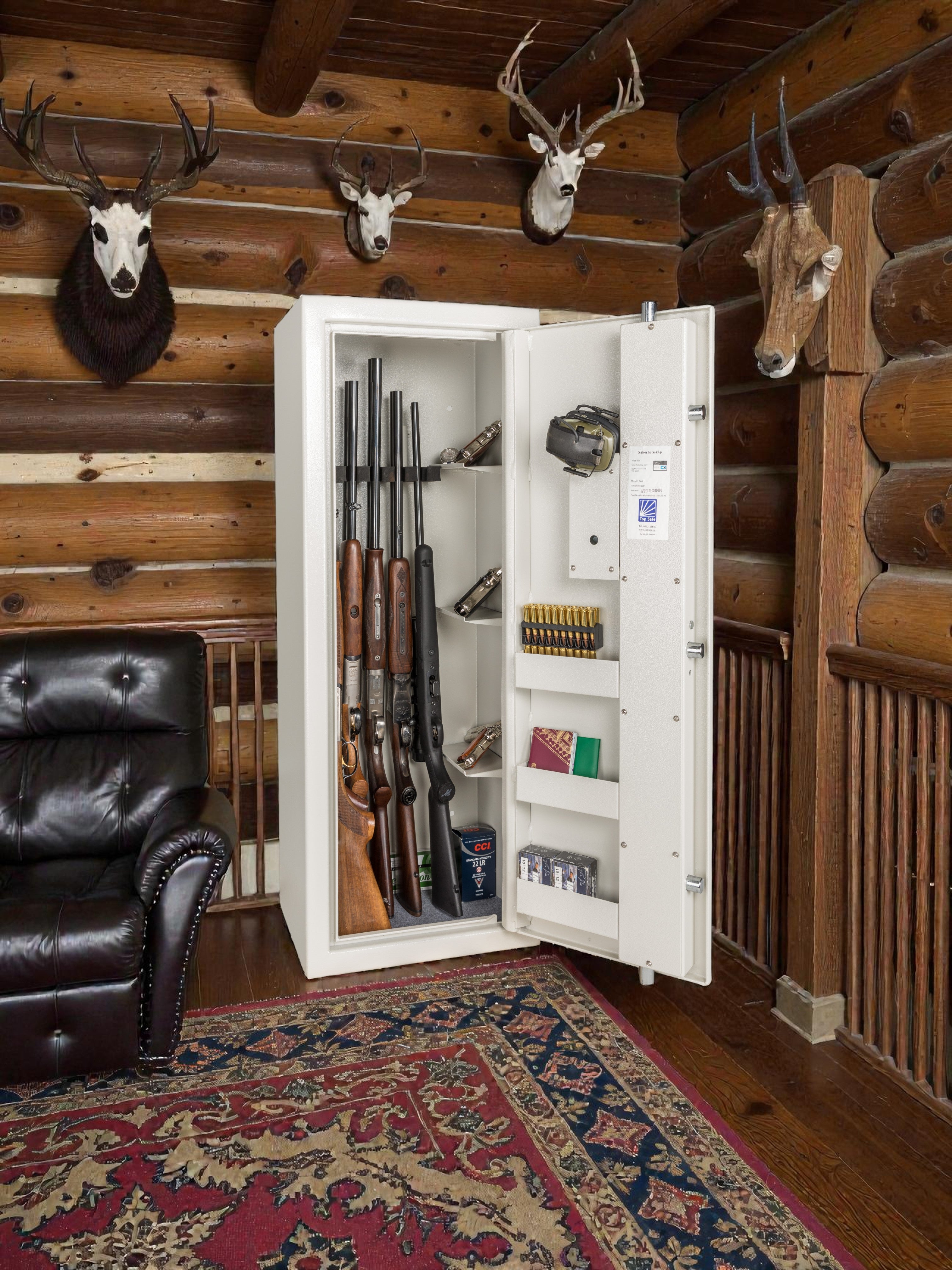 Har plads til op til 10 våben (løbsstøtte til 7 våben), men er godkendt til 20 point, hvilket betyder, at du i teorien kan opbevare fem automatvåben eller ti pistoler eller tyve rifler i våbenskabet. Eller en kombination af disse. Så længe det samlede antal point ikke overstiger 20 point.