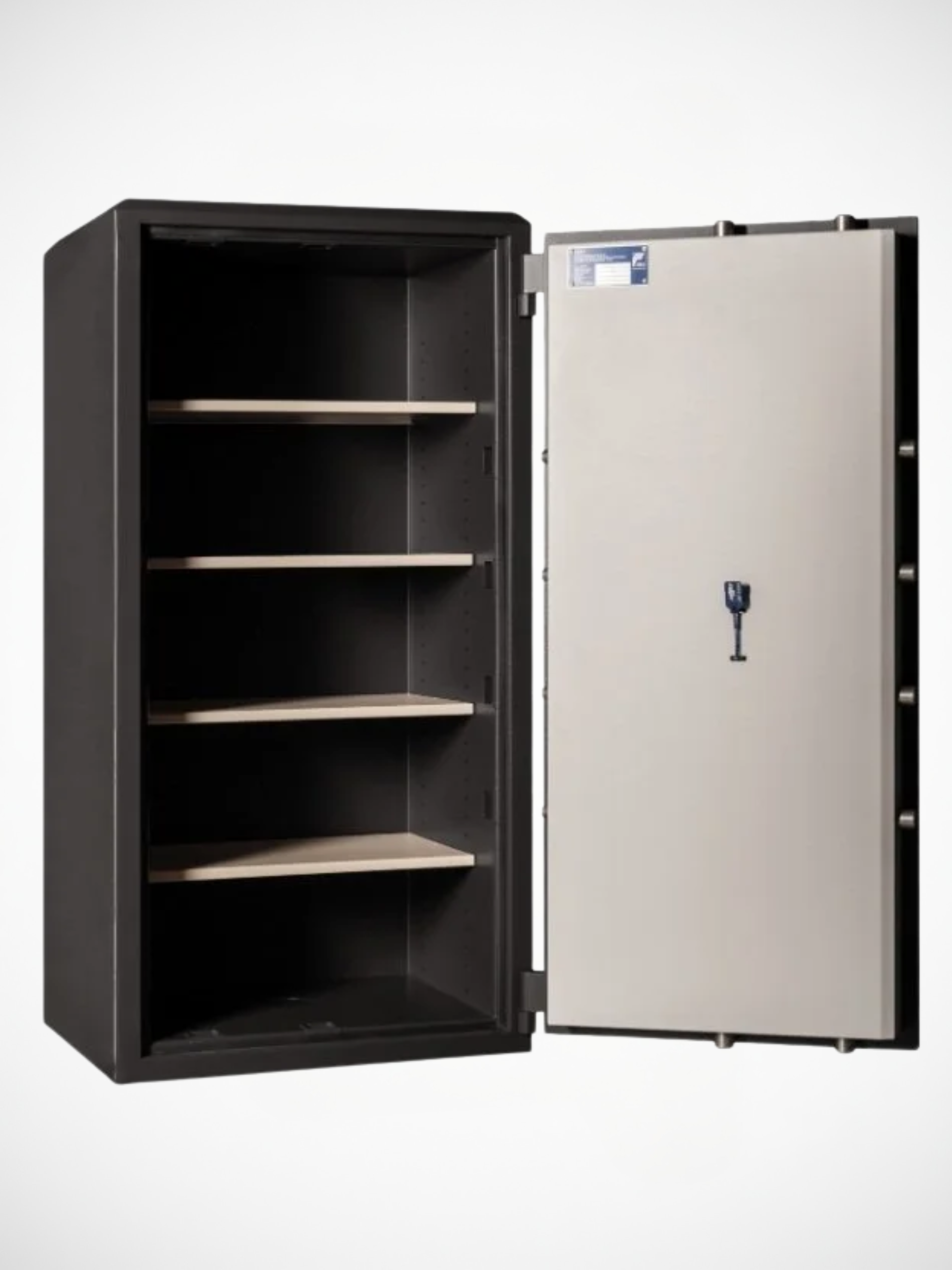 Skåpet är utrustad med högsäkerhetsklassat nyckellås enligt EN 1300 Klass B och 4 flyttbara hyllor. Kodlås eller dubbla nyckellås eller nyckellås + kodlås går att få som alternativ.